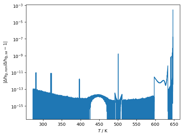 plt.ylabel(r'$|\Delta h_{fg, non}/\Delta h_{fg, sa} - 1|$')
